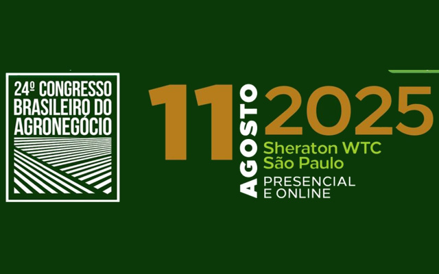 Com o tema, Agroalianças, o 24º Congresso Brasileiro do Agronegócio ocorrerá de forma presencial e On-Line, no dia 11 de agosto de 2025, das 9h às às 18h no Sheraton WTC São Paulo Hotel – Av. das Nações Unidas, 12559. Informações e inscrições podem ser obtidas no endereço: https://congressoabag.com.br/.